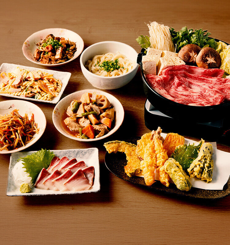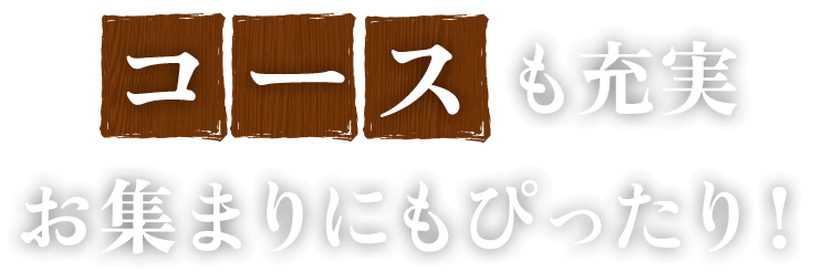 自慢の逸品を堪能していただける4種類のお得なコースは飲み放題付きで、ご宴会にも大変好評です。